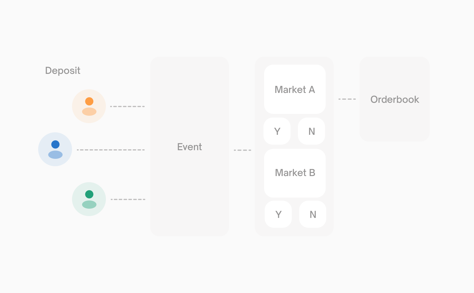 事件是将一个或多个相关市场组合在一起的容器。事件提供组织结构,并支持多结果预测。单市场事件